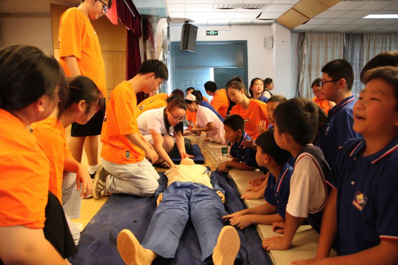ICU的護(hù)理人員向?qū)W生們講解并演示了急救技能——心肺復(fù)蘇術(shù),并耐心指導(dǎo)學(xué)生們利用模擬人進(jìn)行實操。學(xué)生們對此表現(xiàn)出了極大的興趣,認(rèn)真觀看醫(yī)務(wù)人員演示及其他學(xué)生的操練,積極參與操作練習(xí)。通過此項培訓(xùn),讓學(xué)生們了解并掌握這一挽救生命的急救技能,在關(guān)鍵時刻服務(wù)社會。