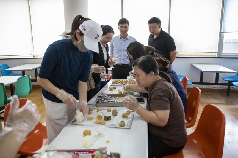 9月28日上午,集團(tuán)公司工會(huì)組織中秋月餅DIY活動(dòng)。工作人員將月餅材料分發(fā)到大家手中,烘焙老師耐心為大家演示,大家一同合作,從配料的挑選—揉皮—裹餡—入?!尚?,一個(gè)個(gè)形狀精美、象征團(tuán)圓的月餅呈現(xiàn)在大家眼前。