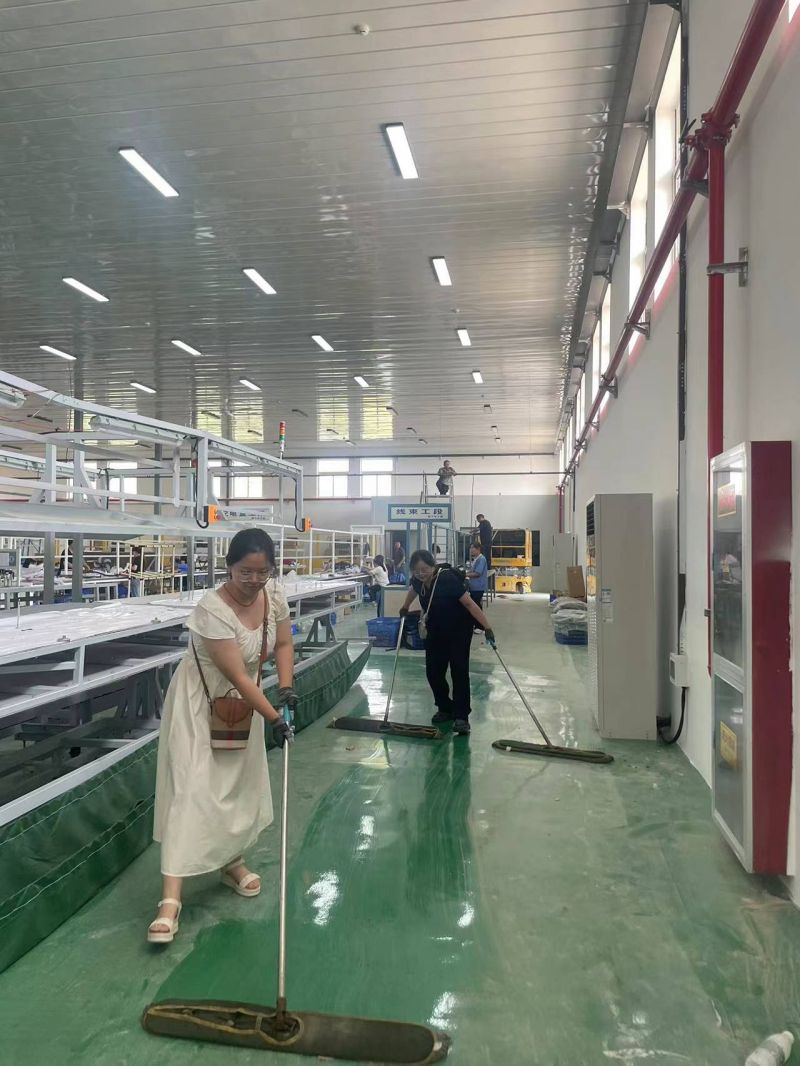 活動開始,新亞公司相關(guān)負責人向大家講解了注意安全事項,分發(fā)工作手套和防護用品,按照分配工作內(nèi)容大家熱火朝天的投入了新工廠的整理及清掃進程。黨員干部們率先垂范,帶頭拿起清掃工具開展現(xiàn)場打掃,男同志們負責規(guī)整運送貨物至倉庫,女同志們按照各自包干區(qū)域細致清掃廠區(qū)地面。在炎熱的高溫下,大家齊心協(xié)力、分工協(xié)作、奮勇爭先,很快完成各自分配任務,充分體現(xiàn)了不怕苦不怕累的戰(zhàn)斗精神。