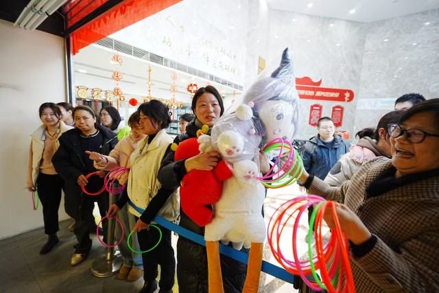 “趣味套圈”活動(dòng)現(xiàn)場(chǎng)同樣氣氛熱烈,吸引了眾多租戶踴躍參與?;顒?dòng)精心準(zhǔn)備了豐厚的獎(jiǎng)品,小小的套圈在空中飛舞,歡聲笑語不斷。這一活動(dòng)不僅充滿趣味,更在無形之中拉近了華強(qiáng)資產(chǎn)公司與租戶之間的距離,增進(jìn)了彼此的感情。大家在游戲的歡樂氛圍中,共同迎接新年的到來,也套住了對(duì)來年滿滿的好運(yùn)期許。