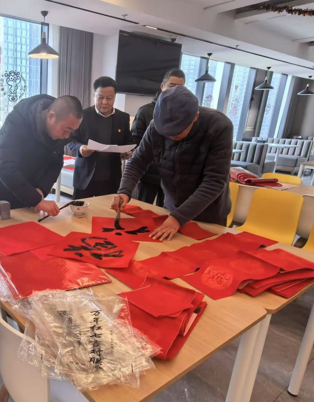 “歲歲平安如意到,年年吉祥福星高”“新春福旺鴻運(yùn)開,佳節(jié)吉祥如意來(lái)”……活動(dòng)中,江蘇省書法家協(xié)會(huì)會(huì)員胡樹森老師揮毫潑墨、筆走龍蛇、氣韻生動(dòng),一幅幅平安和諧、寓意吉祥的春聯(lián)和“?!弊周S然紙上,職工們邊欣賞、邊拍照,手持春聯(lián),喜笑顏開。大家互相討論著各副春聯(lián)的蘊(yùn)意,紛紛表示這是送到心坎里的新春祝福,也給即將到來(lái)的新春增添了濃濃的年味。