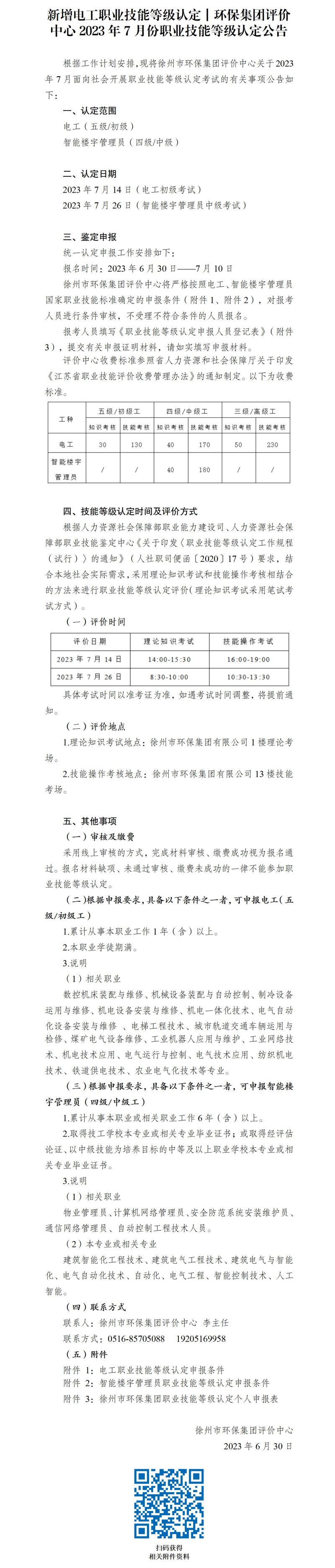 新增電工職業(yè)技能等級認定 | 環(huán)保集團評價中心2023年7月份職業(yè)技能等級認定公告