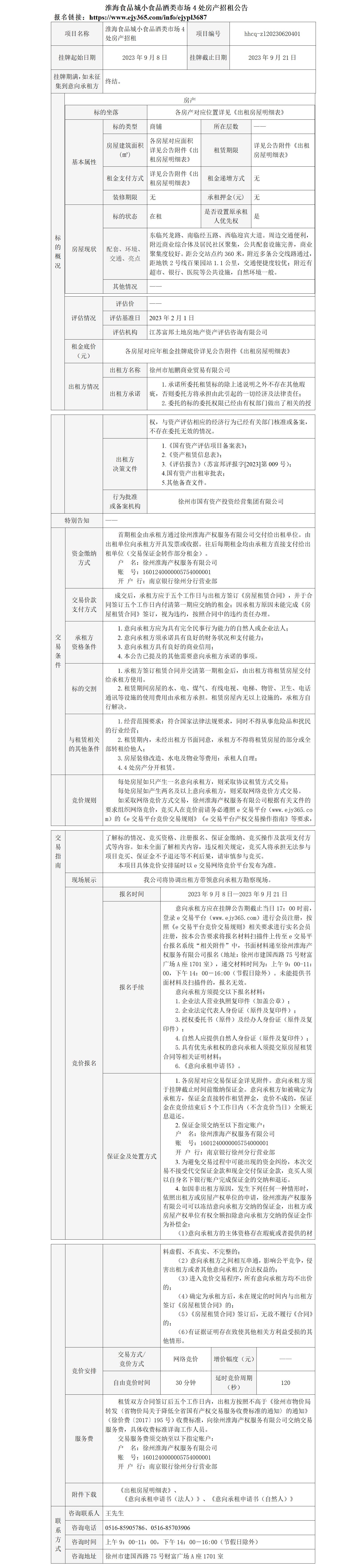 淮海食品城小食品酒類市場(chǎng)4處房產(chǎn)招租公告