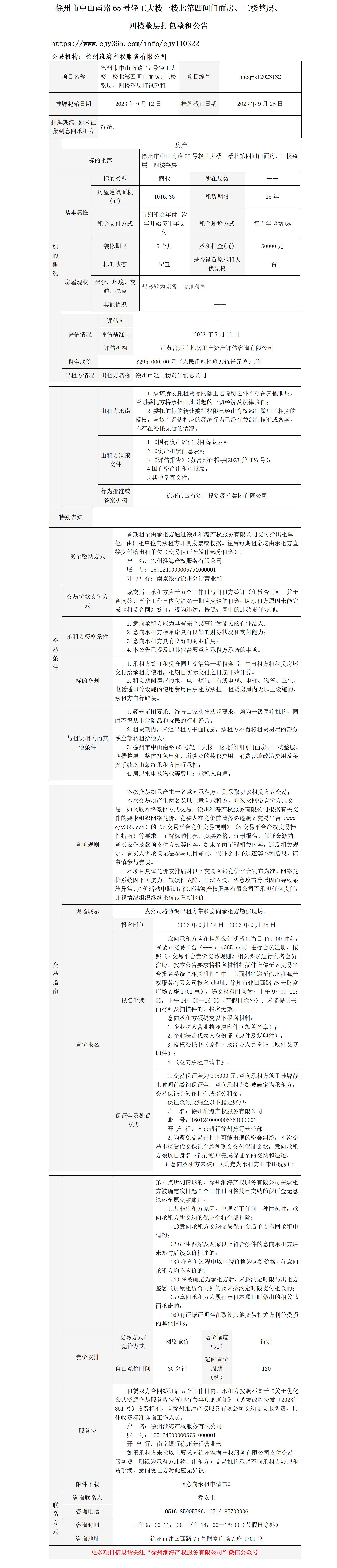 徐州市中山南路65號(hào)輕工大樓一樓北第四間門面房、三樓整層、 四樓整層打包整租公告