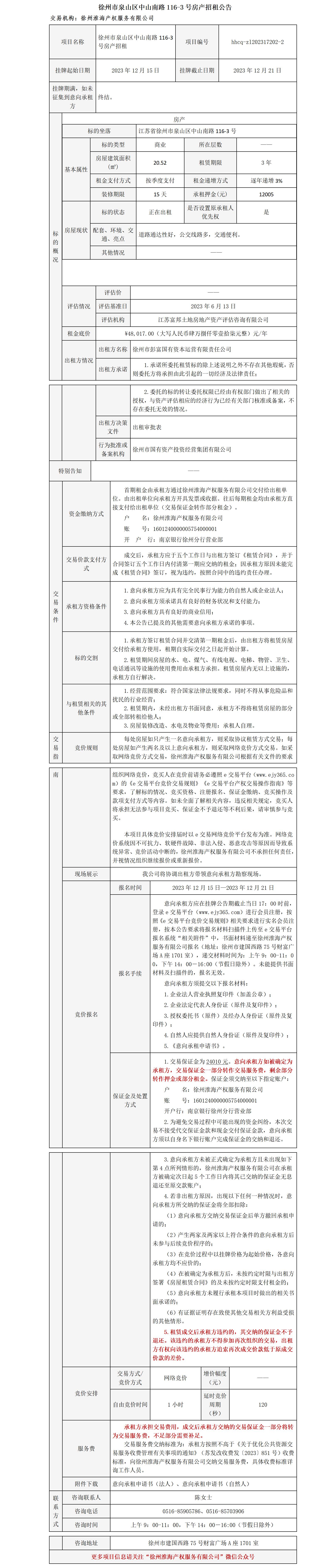 徐州市泉山區(qū)中山南路116-3號房產(chǎn)招租公告