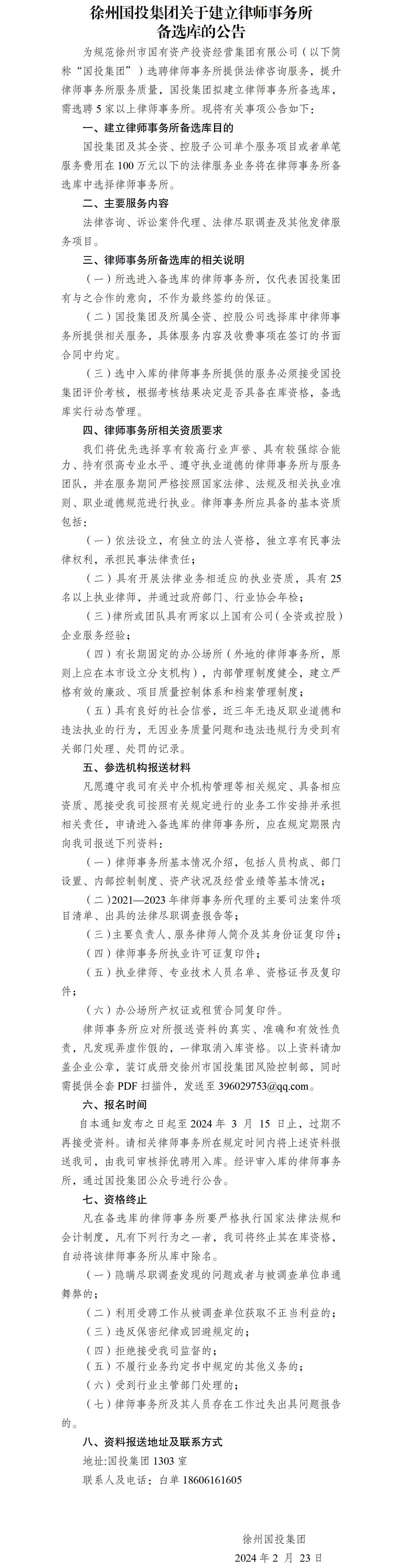 關(guān)于成立國投集團律師事務(wù)所備選庫的公告