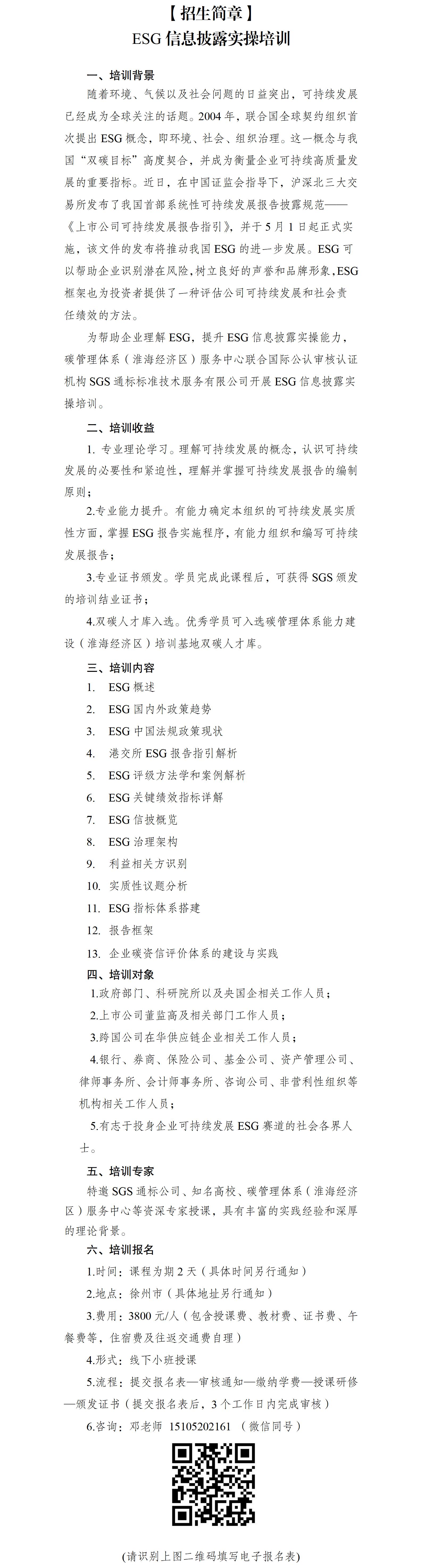 【招生簡(jiǎn)章】ESG信息披露實(shí)操培訓(xùn)