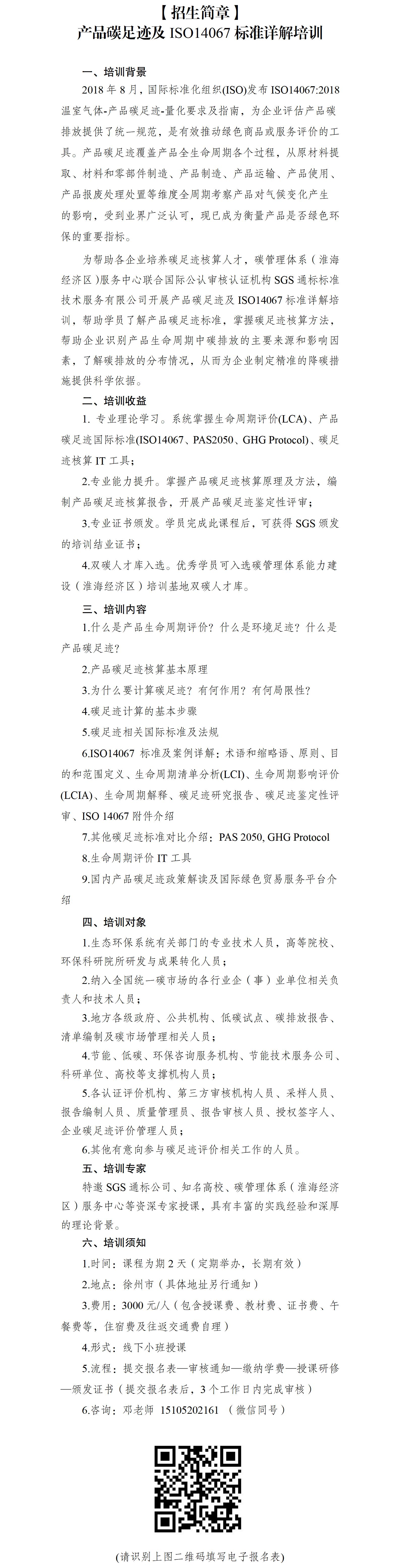 【招生簡章】產(chǎn)品碳足跡及ISO14067標(biāo)準(zhǔn)詳解培訓(xùn)