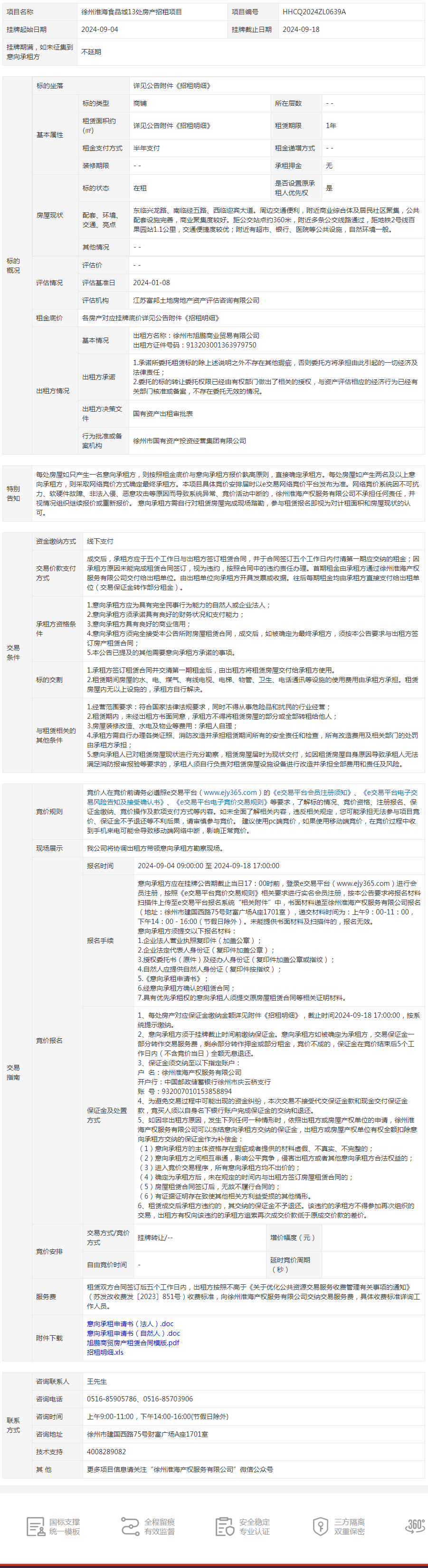 徐州準(zhǔn)海食品城13處房產(chǎn)招租公告