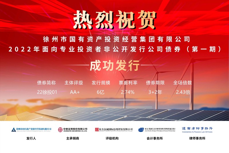 徐州國投集團2022年面向?qū)I(yè)投資者非公開發(fā)行公司債券(第一期)成功發(fā)行