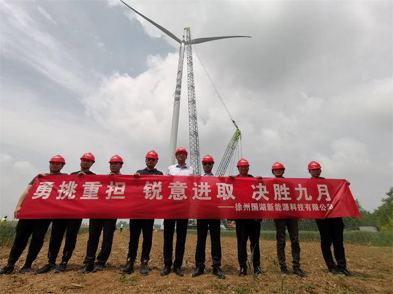 2020年5月2日 11 時(shí)18分,國(guó)湖公司新沂市阿湖鎮(zhèn)一期90MW風(fēng)電項(xiàng)目首臺(tái)風(fēng)機(jī)順利吊裝完成!這是繼 3月15日國(guó)湖公司風(fēng)電項(xiàng)目首臺(tái)風(fēng)機(jī)基礎(chǔ)混凝土澆筑后迎來(lái)的又一重大施工節(jié)點(diǎn),也是新冠疫情發(fā)生后國(guó)投環(huán)能公司在復(fù)工復(fù)產(chǎn)期間取得的又一重要成果!集團(tuán)公司黨委委員、副總經(jīng)理?xiàng)铐g到場(chǎng)指導(dǎo)。