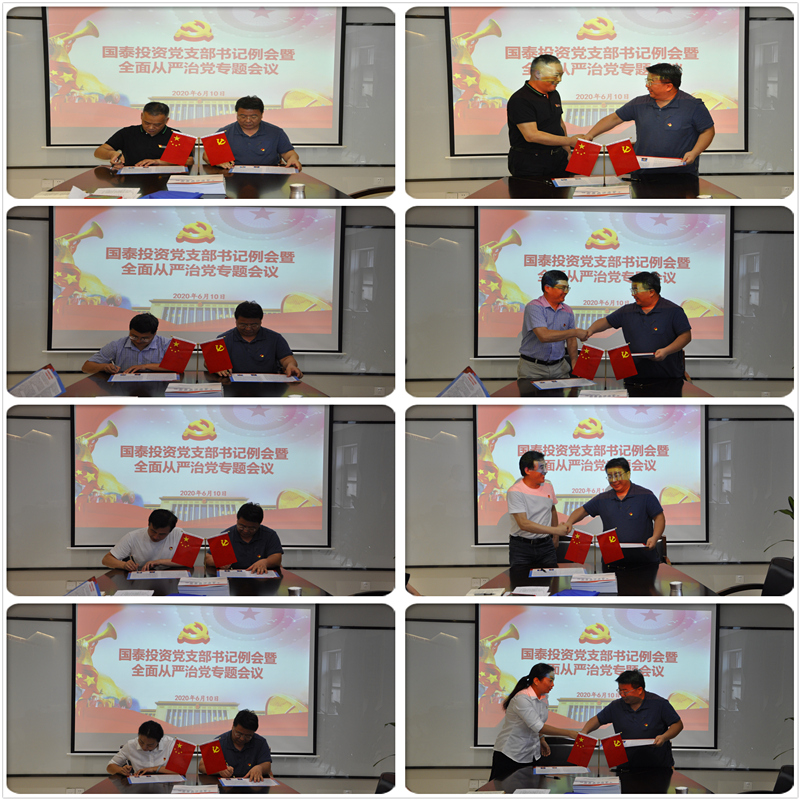 會上,霍凱同志代表公司黨總支,與各直屬黨支部書記簽署了《2020年度全面從嚴治黨責任書》,從制度上形成了以上率下、層層壓實責任的黨風廉政建設責任體系?;魟P強調,簽訂并履行責任書任務,落實全面從嚴治黨各項制度,強化政治意識與政治規(guī)矩,是降低公司經營風險,減少管理問題,保障國泰投資順利轉型發(fā)展的政治保障。國泰投資全體黨員干部必須嚴格遵守黨風廉政建設各項制度,立足本職崗位,在工作生活中以身作則,知敬畏,守底線,嚴格自律,并接受社會各界全方位的監(jiān)督。