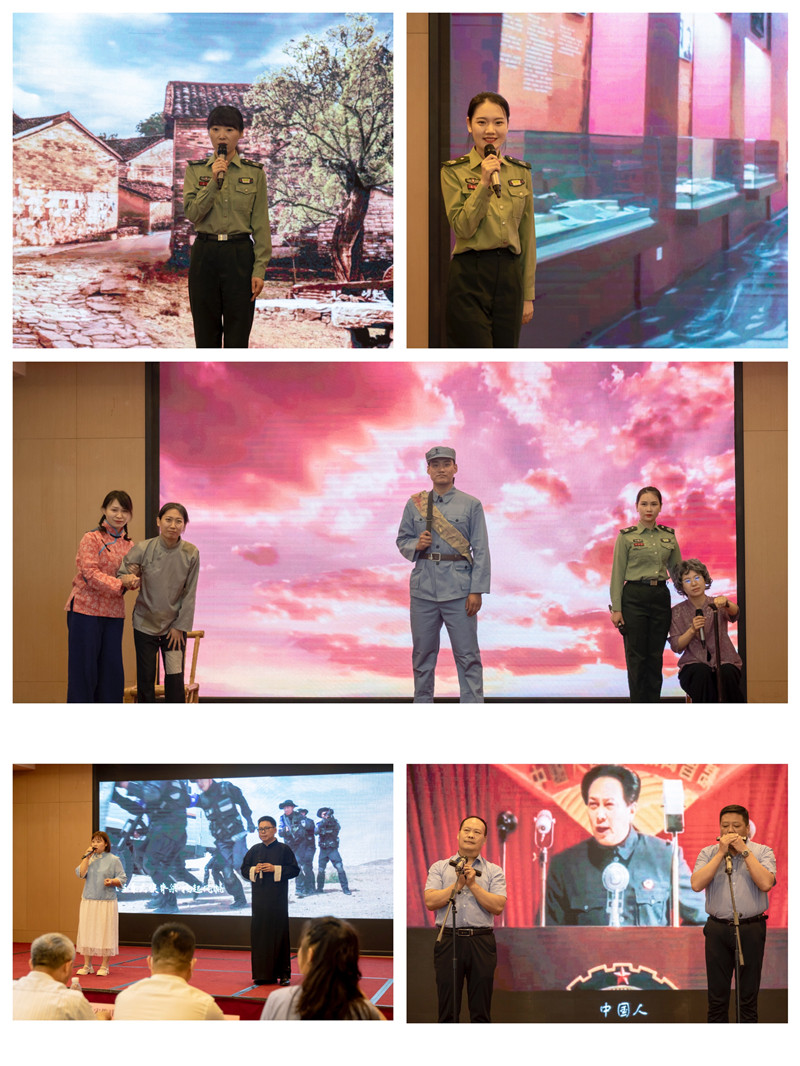 活動邀請淮塔管理中心教育交流處處長溫良以及淮海戰(zhàn)役紅色故事宣講團(tuán)成員,為我們帶來了一場生動的沉浸式紅色故事會。在背景視頻《初心永恒》的渲染下,講解員分別講述了《一根小竹竿》《相隔七十年的團(tuán)圓》《張樹才》和《一頭黃牛》,并演繹了情景黨課《等待》。從不同視角展示了淮海戰(zhàn)役中的地下黨員、解放戰(zhàn)士、支前群眾,為了新中國的解放事業(yè)無私奉獻(xiàn)的愛國情懷及偉大精神。