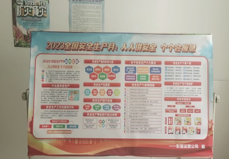 彭富運營公司:今年6月是第22個全國“安全生產(chǎn)月”,彭富運營公司上下樹牢安全發(fā)展理念,壓緊壓實安全生產(chǎn)責(zé)任,深入排查安全風(fēng)險隱患,扎實推進問題整改,筑牢安全生產(chǎn)防線,營造安全、和諧、發(fā)展的生產(chǎn)環(huán)境和氛圍。6月上旬,公司召開“安全生產(chǎn)月”啟動會議,學(xué)習(xí)了習(xí)近平總書記關(guān)于安全生產(chǎn)的重要論述,真正做到學(xué)懂弄通,學(xué)以致用,融入日常安全生產(chǎn)管理工作。傳達了徐州市委、市政府及集團公司安全生產(chǎn)相關(guān)文件,深刻學(xué)習(xí)領(lǐng)會了集團公司2023年安全(消防)環(huán)保工作會議精神。通過制定安全生產(chǎn)月活動計劃,制作安全生產(chǎn)月宣傳海報、條幅,以及動員員工積極參與集團公司舉辦的安全知識競賽,進一步增強安全意識。