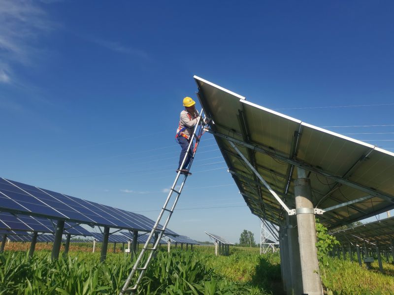 安徽區(qū)域的地面光伏場(chǎng)站較為分散,光伏區(qū)遍布茂密的農(nóng)作物或雜草,完成一次巡視需要大量的人力與時(shí)間。光伏板經(jīng)過(guò)烈日曬烤,散發(fā)陣陣熱浪,宿州協(xié)鑫、碭山協(xié)鑫、碭山鑫能電站的運(yùn)維人員剛剛開(kāi)展一次登高作業(yè),在地面小伙伴的配合下,完成了對(duì)故障光伏組串的維修。熾熱的火傘高張?jiān)诳罩?,高處的風(fēng)并沒(méi)有送來(lái)涼爽的感覺(jué),被暴曬過(guò)的支架盡管隔著工作服,仍能感受到它的炙熱。