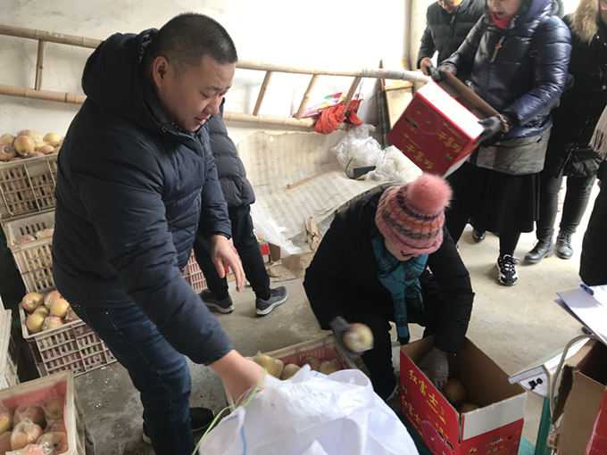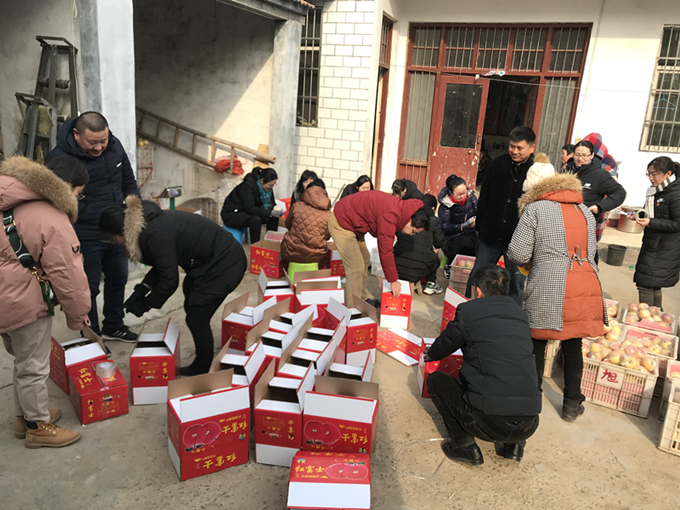 在出發(fā)之前,集團公司機關(guān)黨支部第一時間將消息轉(zhuǎn)發(fā)至機關(guān)各支部工作群,號召大家團購蘋果,幫助季秀云一家解燃眉之急,同時在工作群、朋友圈等轉(zhuǎn)發(fā)信息。來到季秀云家中,同志們明確分工,擼起袖子,裝袋的裝袋,封箱的封箱,在大家的共同努力下,季秀云家中剩余的1000斤蘋果全部封裝購買完畢,加上從其他村民家拉來的蘋果,三個小時共封裝蘋果200余箱2000余斤,真真切切地為當(dāng)?shù)匕傩张艖n解難,并在春節(jié)前發(fā)放給集團公司黨員。黨員們?yōu)槔先怂蜕瞎?jié)日慰問品,贈予老人的孫子書包、文具,并鼓勵他刻苦學(xué)習(xí)。